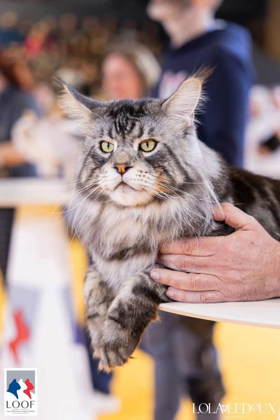 C'est une merveilleuse récompense que le Concours Général Agricole 2025 a décerné à notre jeune Silver pour sa première participation , puisqu'il a été élu meilleur mâle Maine Coon, puis MEILLEUR DE RACE. Cela lui a permis d'être sélectionné pour la grande finale avec les meilleurs des 36 races représentées. Et pour notre plus grand bonheur, il a franchi toutes les marches du classement pour arriver dans le TOP 3.